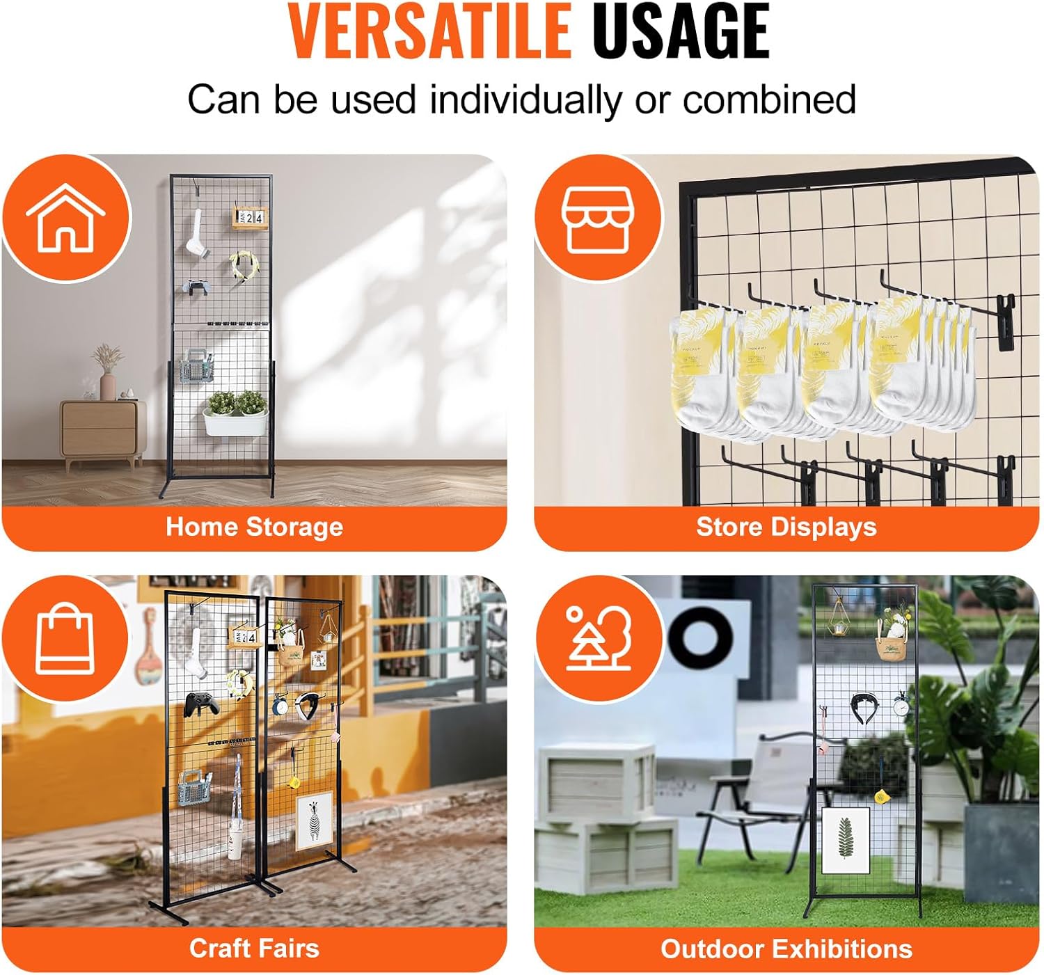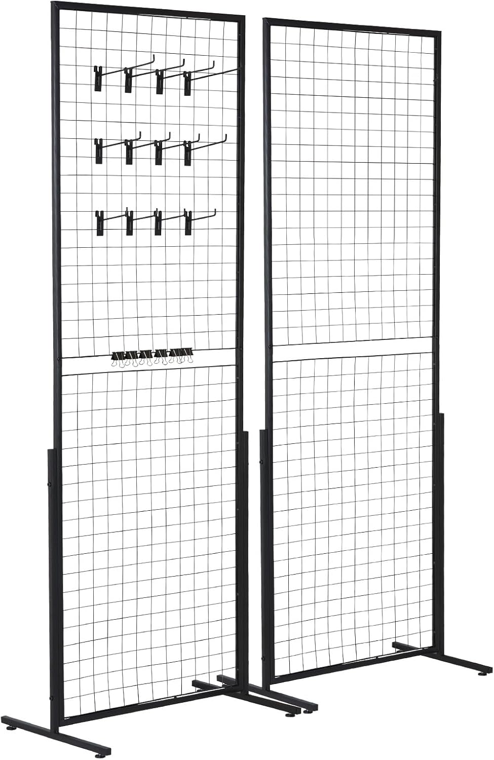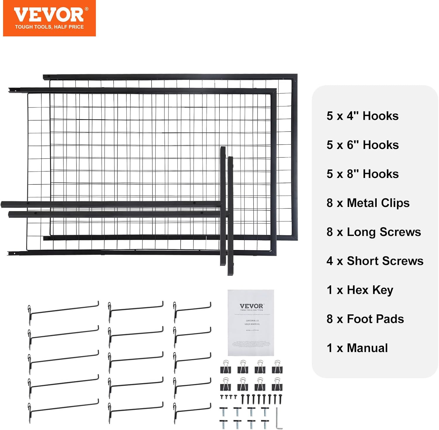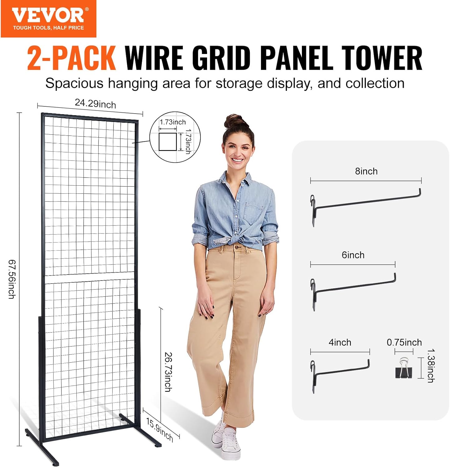 VEVOR 2′ x 5.6′ Grid Wall Panels Tower, 2 Packs Wire Gridwall Display Racks with T-Base Floorstanding, Double Side Gridwall Panels for Art Craft Shows, Retail Display with Extra Clips and Hooks