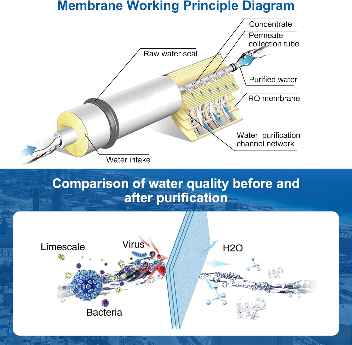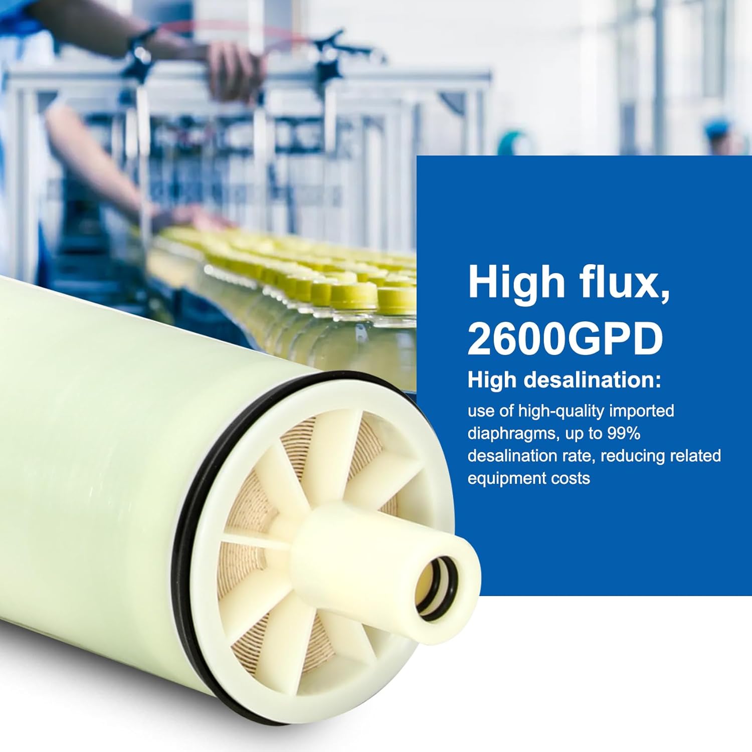 【High Capacity】2600 GPD ULP 4040 reverse osmosis membrane is designed to withstand the demands of industrial use, providing clean water for residential, agricultural and industrial use throughout. The large size of the housing also allows for greater flow rates, ensuring fast and efficient water treatment. With the largest water housing, you can be sure that your water treatment system will deliver the highest quality water