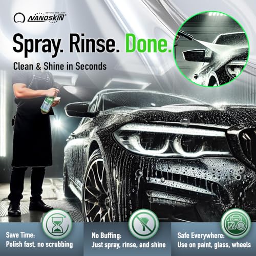 ✅ SIMPLY SPRAY ON AND RINSE OFF: Unlike a traditional car wax or sealant that requires rubbing and buffing, Nanoskin Super Charger reacts chemically with water contact turning it from hydrophilic to hydrophobic. Spray on and rinse off with water.