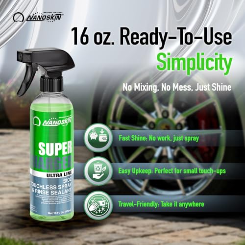 Nanoskin Ultra Line SUPER CHARGER SiO2 Touchless Spray-On/Rinse-Off Sealant 16 oz – Car Wash Paint & Glass Spray for Car Detailing | Safe for Cars, Trucks, Motorcycles, RVs & More | 100:1 Dilution