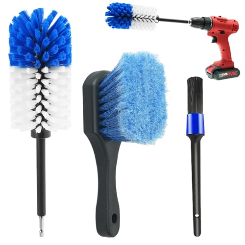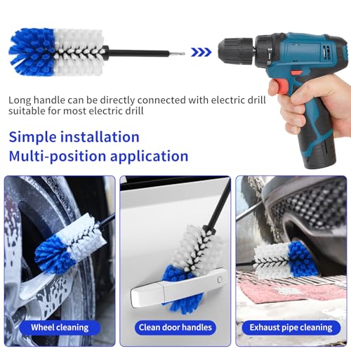Wheel Brush Kit, Soft Drill Wheel Cleaner Brush, Drill Brush for Car Wheel, No Scratches Highly Dense and Durable Car Wheel Brush Rim Tire Car Cleaning Brush Set for Wheels, Rims, Engines, Exhaust